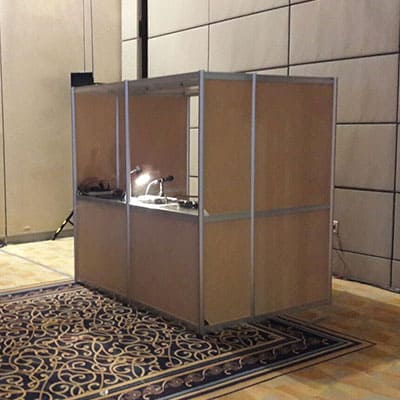 Ofrecemos cabinas completas para un total de aislamiento y discreción, así como medias cabinas que son ligeras y ocupan menos espacio. El uso de una u otra depende de las características técnicas del evento.